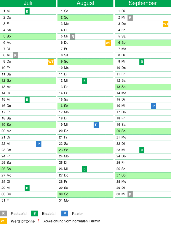Abfuhrtermine in Holzhausen